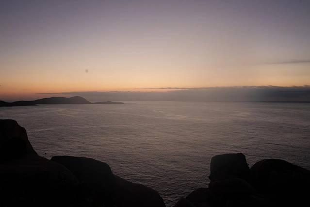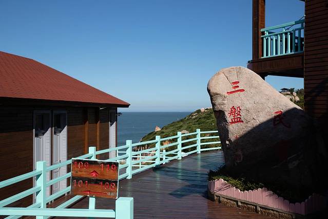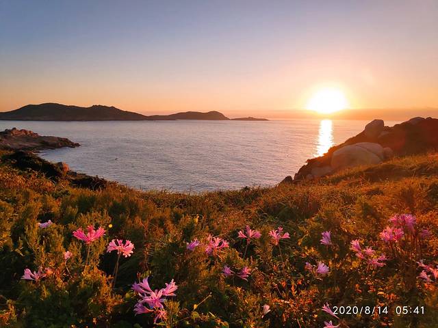 住在三盘尾的好处就是早上看日出地方离得近。5点半起床也不晚,跟着坐摆渡巴士来的游客,沿着步行道就到了岛东边的海防战壕观景点。清晨的海风微凉,哆嗦的翘盼中,迎来海天交界处的一抹亮光。远处的海面显得很平静,与天分不清界限,而近处可以看见起伏的波涛。随着越来越多的游客聚集上来,都在找寻最佳的观景点。日出之前的等待似乎很漫长,耳旁的人群中有的谈论着昨天经历,有的计划今天的行程。也奇怪,人们到了登高或远眺的景点都会期待着追寻日出或日落,其实对于日复一日的自然现象并没太多不同,只是由于个人经历的累积,当时心境的酝酿,还有同行人的变化,才会赋予不同的意义吧。日出让人振奋,夕阳让人平和,如人一生。
