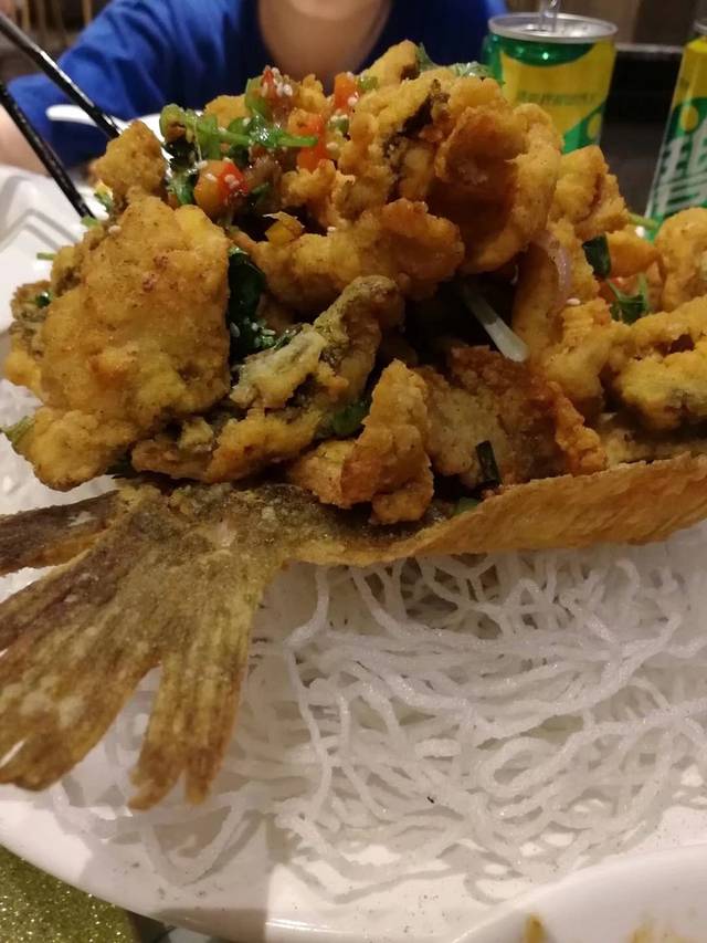 办理入住放好行李,我们在附近的饭店解决晚餐。油炸比目鱼,这样的做法第一次吃。