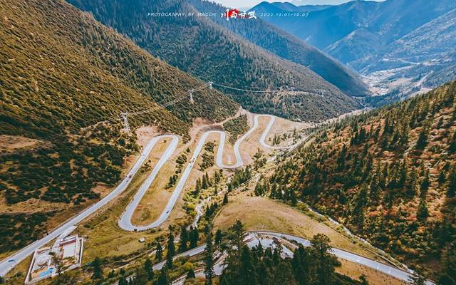 天路十八弯有一种震撼的曲线美,有两处观景台可以俯瞰山路十八弯的景象,一处就是在剪子湾山口上的观景台,另一处就是山顶上。