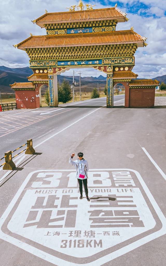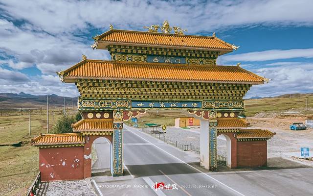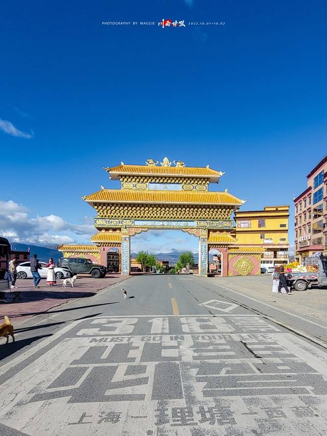 理塘 有东西两座城门,西城门的牌楼下方的公路上有一个“此生必驾318”地标,而成为许多人竞相打卡的网红地。西门目前的比较清晰,为了游客安全,放在里侧面。