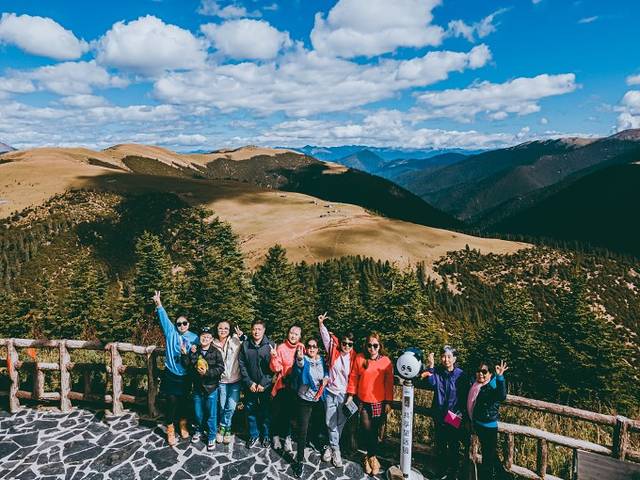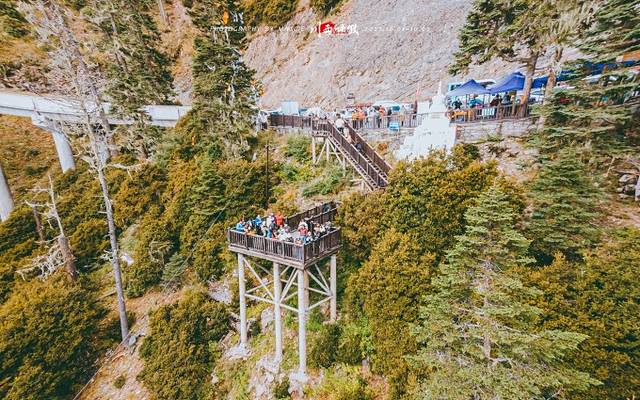在观景台远眺可以看到 四川 省最高的山峰,俯视则可以看到蜿蜒盘旋的山路,像一条巨龙一样盘旋在山间,在这里你可以体会到 千山 万壑尽收眼底的意境,还可领略一番茶马古道的古风遗韵。