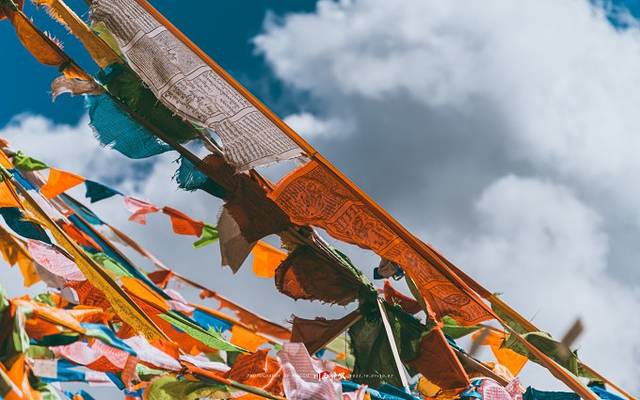 山顶的风很大,沿途有很多的经幡,在大风下不停的飞舞。
