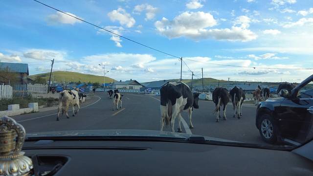 车子行进途中遇到的牛,它们是从不给人类让路的!当然我们也不敢撞到它们,因为赔不起😂