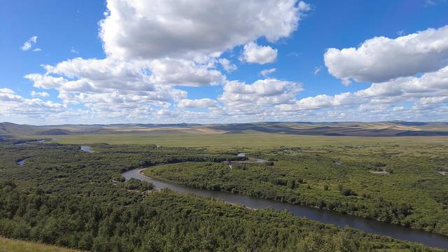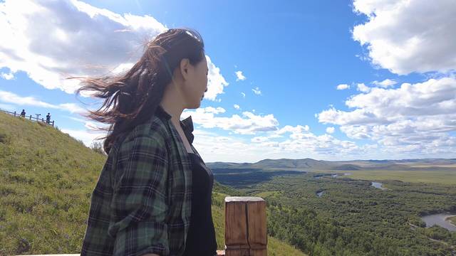 额尔古纳湿地号称亚洲第一大湿地,中国保持原状态最完好、面积较大的湿地,被誉为“亚洲第一湿地”。来了这里发现果然很美,空气很清新,从上往下俯瞰,可以看到全景。初见湿地,合乎我对这里所有的幻想!爬到山顶,这是观赏湿地的绝佳位置了。