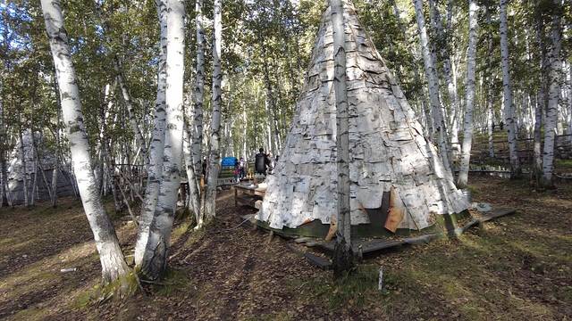 第一次见到用树皮做的房子,里边是真的可以住人的
