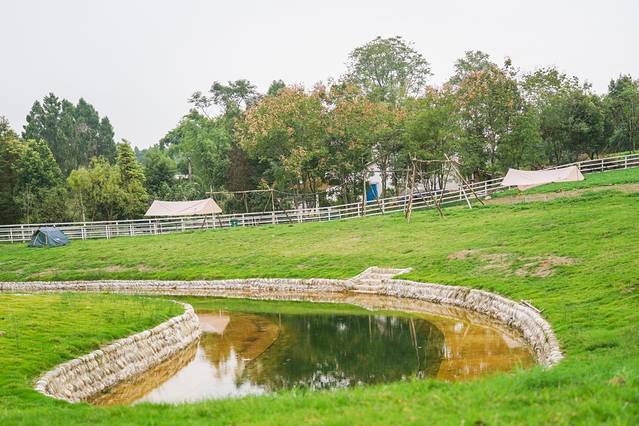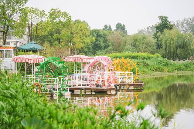 从卓筒井遗址公园过来不远,绿山微湖园区里打造有凤栖花海、欢乐沙滩、萌宠园、欢乐草坪,还有特色烧烤、露营地、吊脚楼文化长廊等,非常丰富,在里面玩上一天都不会腻。