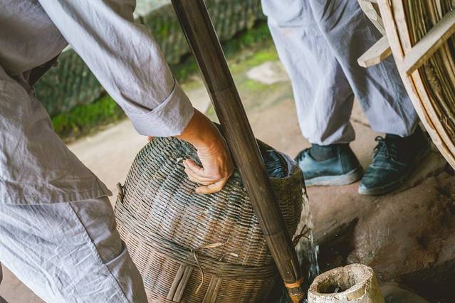 茅屋与卓筒井井眼垂直对应处有一个约 25 厘米的圆洞,圆洞上固定竖起一个高 6 米的蔑制引笼,为保证稳固,引笼还被三至六根长蔑牵扯在地上打桩固定。