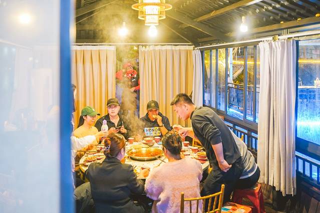 和朋友一起从绿山微湖出来时已经傍晚,当地的朋友推荐我们来的这一家湖上火锅——九歌庭园生态火锅