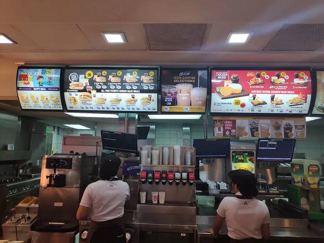 拿了行李,出来左手边走到底就可以看到免费机场穿梭巴士站的牌子,按照牌子走到柜台,会有工作人员引导到等候区。我们需要乘坐T3到T4的巴士,转乘飞往薄荷岛的国内航班。在机场快餐店先吃了早饭,找到换汇点,兑换了比索,汇率1美金:50.95比索。