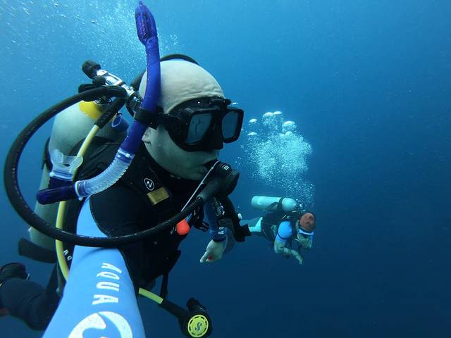 装备穿戴整齐,顺利水下,紧跟潜导。顺着海坡慢慢下潜,动植物越来越丰富。原以为gopro的30m防水壳很多余,这次终于学到了,原来是真的很必要啊,水压一大,按钮统统失灵,所以这一潜尽管看到了狮子鱼、海蛇,都没能拍到一张满意的照片。小丑鱼的视频还行。结束一潜,赶紧打“摩的”回潜店拿车,花了200P。