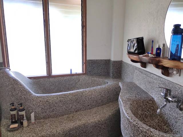 石制的卫生间虽然很有感觉,也只有孩子用过一次泡澡,水压不是很稳定,二楼的热水有时候会停供,但是不影响日常的冲凉。