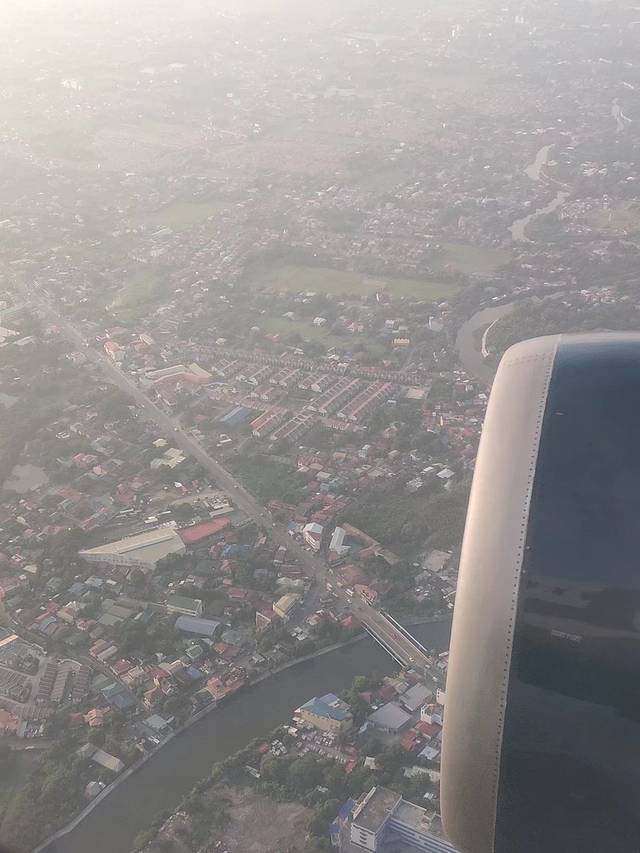 早上六点半,从机窗看见了马尼拉的容貌,市区的一片片低矮的房屋簇拥在河道两边,河水显得也不清澈。7点降落,居然还提前了半个小时。