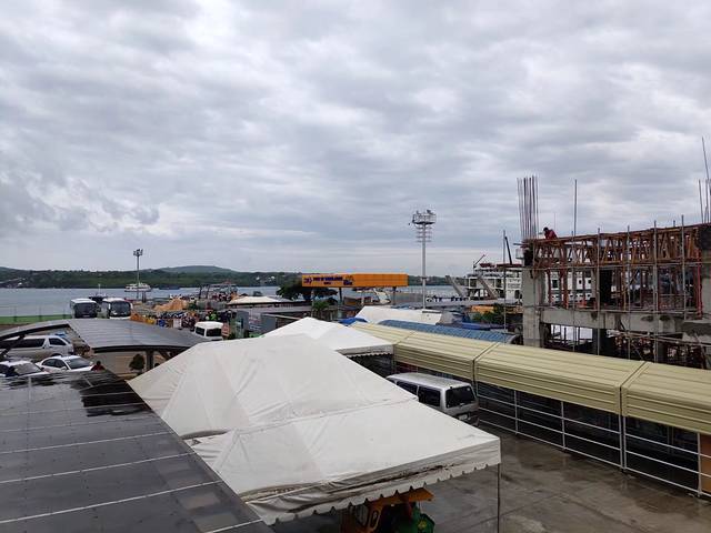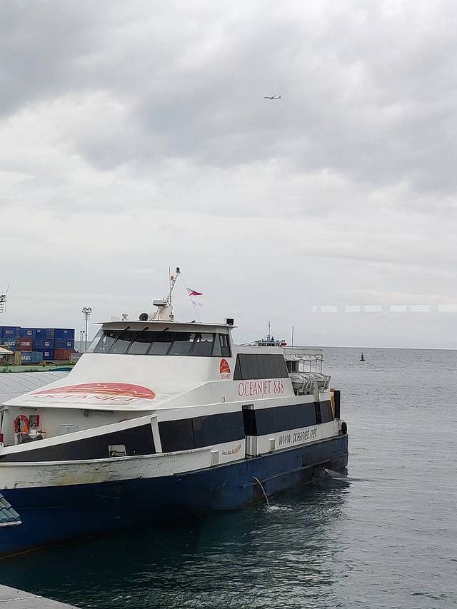 不到半个小时的路程800P的价格,到达了塔比拉兰码头,码头已经是人山人海,天气很好。办理了离岛税和行李托运费(航空托运的大箱子才要办理)。过了安检,已经找不到位子坐了。10:40的开船,还有半个小时。
