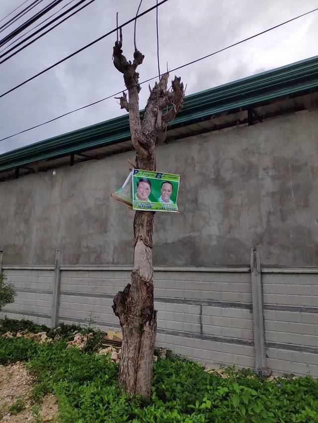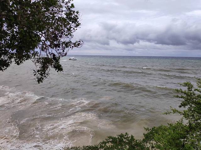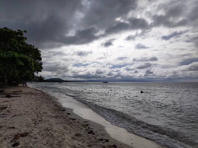 小树上挂着市长和副市长的宣传标语,这在国内怕是万万使不得。走到海滩才知道这边是酒店的私有沙滩,进入还得交25P,虽然也没多少钱,但是这台风天,现在的海真没啥看头,浪太大。