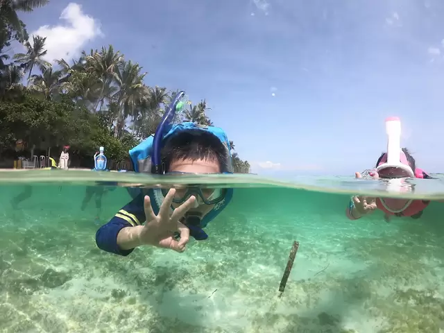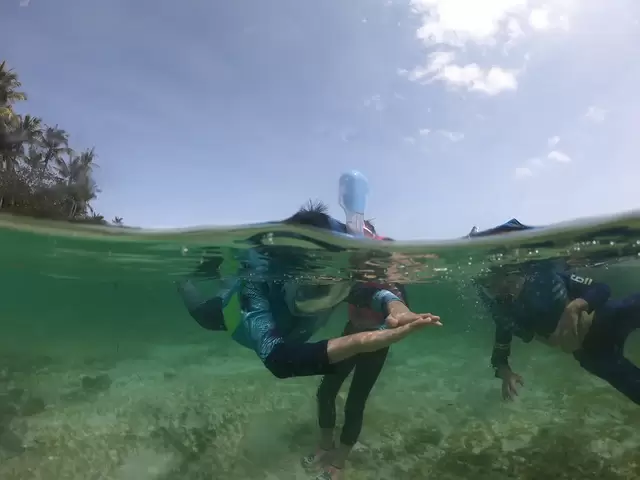 大概11点,已经骄阳似火了,海水的温度也已经上来,孩子们都想着再下海浮潜,挨个带着三个孩子再次下水,看着他们看见鱼群和各种生物兴奋的样子,回想起我们小时候下个池塘还怕大人骂的日子,真是感慨。