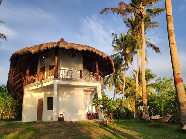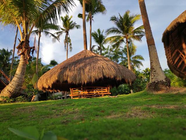椰子树下的躺椅需要整个人哈腰才能钻进去。