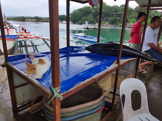 掉头走到主路,看见当地人带个毛巾,我一想这大周末的早上应该是奔着海边去的,于是跟着一帮当地小年轻走到了隔壁不远处的white beach,原来不远处就有免费的沙滩,这里是当地人乐园。边上一户人家养了不少的猫。