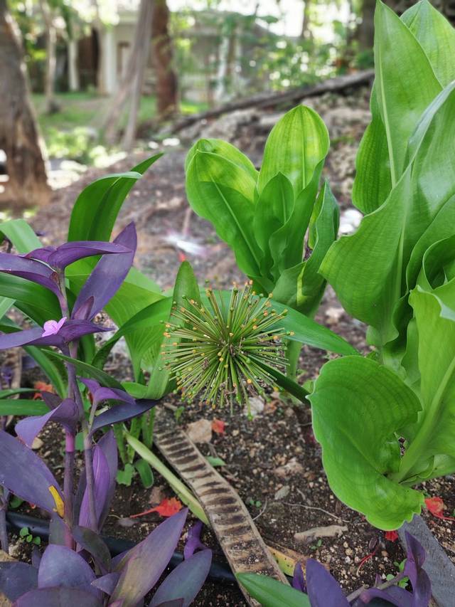 上午自然时间富裕,周围转转,早上大家都没起床,我走下楼,发现椰子树下长满了一簇簇的蘑菇,看起来跟我们这边的也差不多。