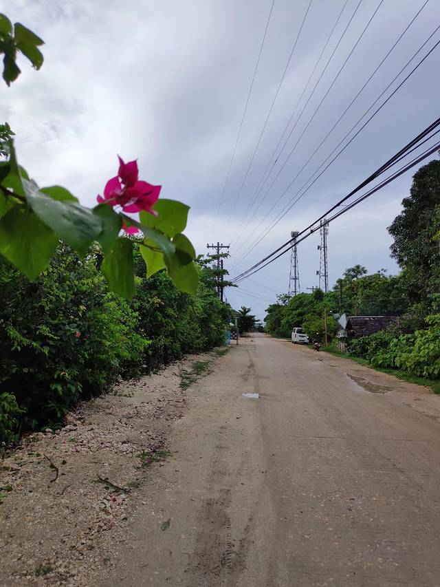 清晨五点多伴着鸡鸣狗吠醒了,跟国内一样没有时差。大家还都在睡着,老人家我出门去遛弯。一夜的暴雨使门口的道路显得有些泥泞,走路不到十分钟就能走到海滩。