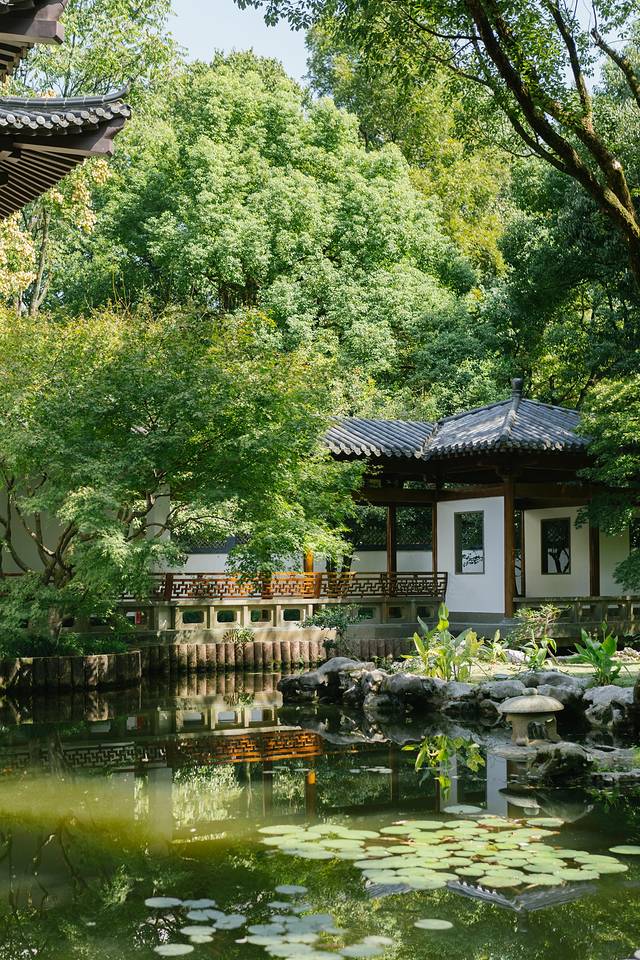 杭州 西湖总藏着许多宝藏之地,除了日出日落的西湖美景,在植物园边上还有一个“桃花源”——云松书舍。它是金庸先生于湖畔建筑的避世藏书阁,也是一处松风明月的小众绝美园林。