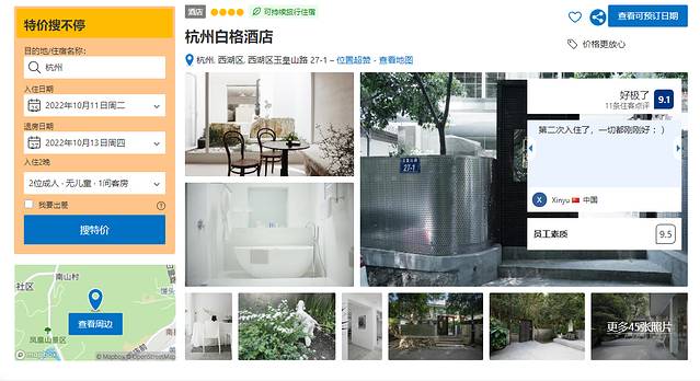 一直都想在 杭州 找个民宿住一住,没成想Booking上的民宿选择也很多,这一次我们选择的是白格酒店。白格距离风景如画的西湖只有15分钟步行路程,距离苏堤有25分钟风景优美的步行路程,距离雷峰塔有20分钟步行路程,距离 杭州 火车站有15分钟车程,距离 杭州 火车东站有40分钟车程,距离 萧山 国际机场有1小时出租车车程。可以说这个位置真的是绝佳的 杭州 旅游必选地。