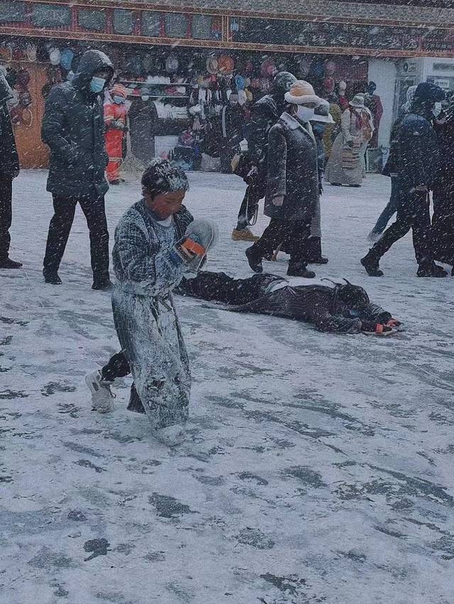 因为提前一天预约了布达拉宫门票,第二天吃过早餐后就去爬布达拉宫了,布达拉宫作为西藏的象征,是所有朝圣者心中的圣地!来这里,不仅可以观赏宫内收藏的大量历史文物,欣赏藏民族精彩的建筑艺术,更可以在那种圣洁的氛围中进行一次灵魂的洗礼,整个参观过程花了不到2个小时。夏天参观的人特别多,冬天参观布达拉宫的人不是很多,而且是免费参观,所以可参观的项目没有夏天的多,参观时间也有所限制。布达拉宫的白宫墙体粉刷都是各地的藏族同胞们自发前来义务粉刷哟,他们与布达拉宫管理处的工作人员合作,将牛奶、蜂蜜、藏红花、白灰等倒在一起,搅拌成“甜蜜的”涂料,再由排队等候的义工装桶,然后一步步背至粉刷点。