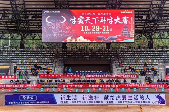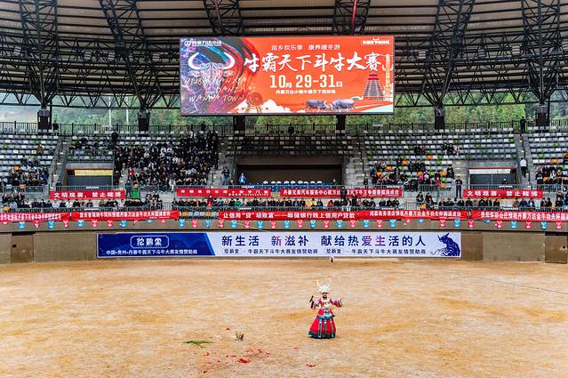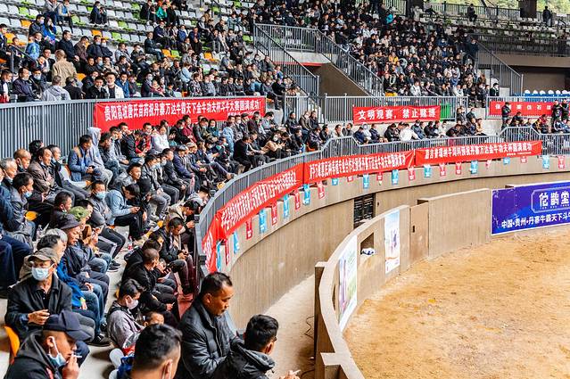 这座牛霸天下竞技场场馆也是值得一提的,其占地面积为 5513 ㎡,分六个区域共有 4933 个座位,可以看到现场有超大转播屏,可同时容纳上万人前来观赛。当天的开幕式十分有层次,有苗族姑娘的献歌;也有活力四射的啦啦队献舞;更有传统的礼仪让比赛显得仪式感满满。