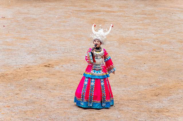 苗族姑娘人美歌甜,侗族男女的歌舞也同样精彩。下面这些衣服面料深一些的就是侗族的小哥哥、小姐姐。他们带来的表演更纯粹一些,适合沉浸式地去听去感受。在各省林,我彷佛进入了他们的田野和梯田,享受着他们无忧无虑地生活,不得不说这就是少数民族普遍幸福感更高的原因吧?