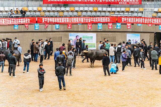 既然是来 丹寨 过苗年的(时间是10月29-31日),那么肯定要体验一些当地特色的民俗。“牛霸天下”斗牛大赛就是苗年的重中之重。活动三天,一直都有斗牛比赛!三天分别是C、B、A三组依次登场比试,每天都会在相应的组别里产出奖项,总奖金高达32万。据了解这三组是按照水牛的重量来划分的,C组体重在1450斤以下,B组体重在1600斤以下,A组体重在1750斤以下。