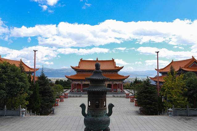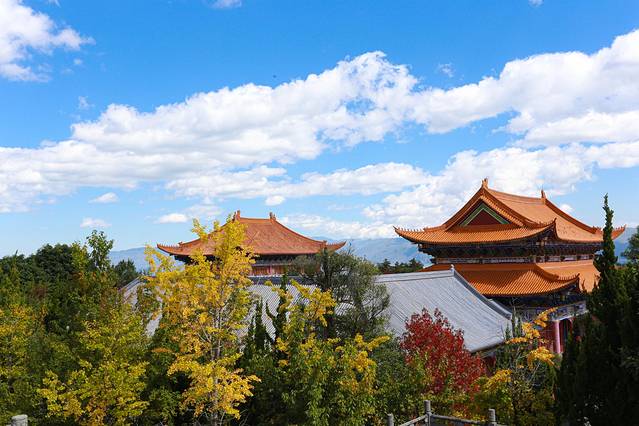 深秋时节,银杏叶逐渐泛黄,天气晴朗真的可以看到不远处的洱海。寺里播放着佛歌,让浮躁的内心得以平静,这个时候又不着急赶路,或许这也是游览崇圣寺三塔的别样感受吧。