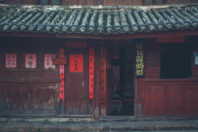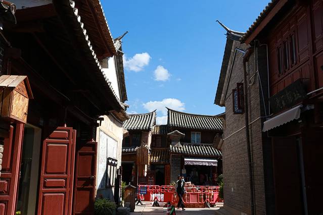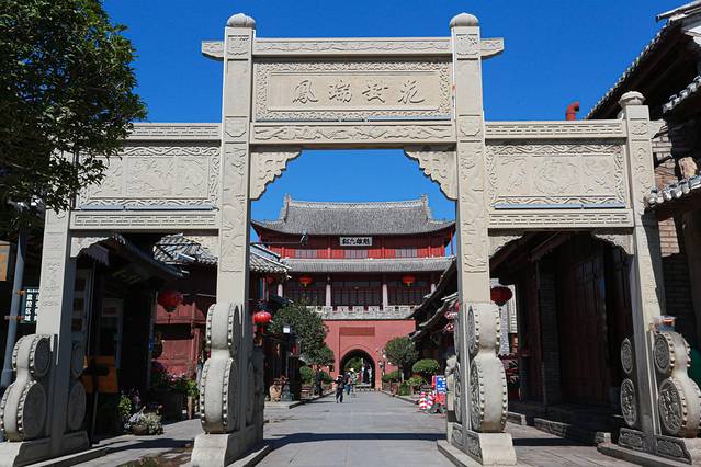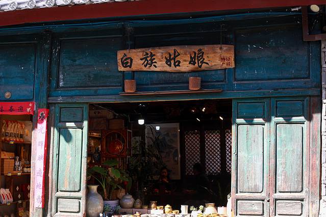 漫步于古镇的青石板街,不经意间走进一条小巷子,或许就是一户当地白族人家的“豪宅”,据悉这些宅院大多是昔日白族商人荣归故里建造的,当地白族有一句童谣“大瓦房,空腔腔”,意思就是说生活再节衣缩食,也要给自家建一座大气的宅院,这一特质走在古镇,会很有感触。