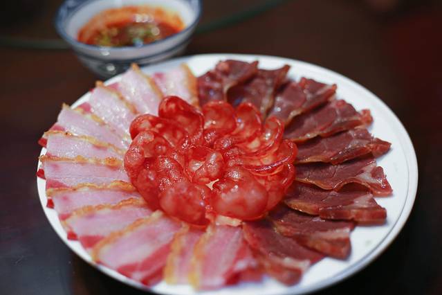第三天上午我们驱车转战 沙溪 古镇,抵达的时候就已经中午时分了,所以直奔当地比较出名的一家餐厅“又见 沙溪 ”,先来说一下整体消费,人均50-60的样子,网上评价都还挺不错的,所以一定要来拔草,当天中午他家吃饭的还挺多的。首先这一盘火腿腊肉,就真的征服了我们几个,比传统腊肉软,而且没有那么咸,越嚼越香。
