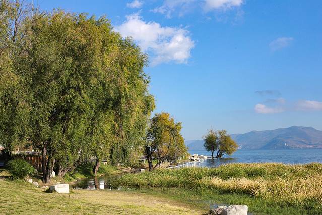 沿着洱海边,一路经过小桥流水、湿地,景色各有不同,但是惬意的风一直都轻轻拂过,那是自由的味道,那一刻也是释放生活和工作压力的美好时光。