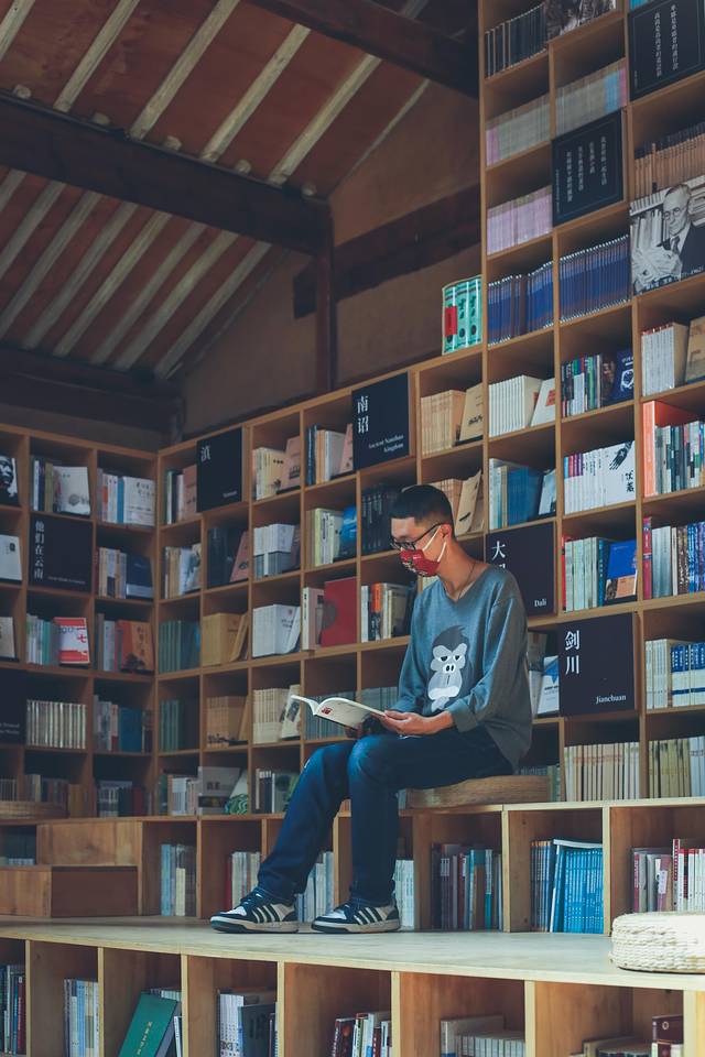 书店进门右手边的书架,拍照很好看,座位也蛮多的。