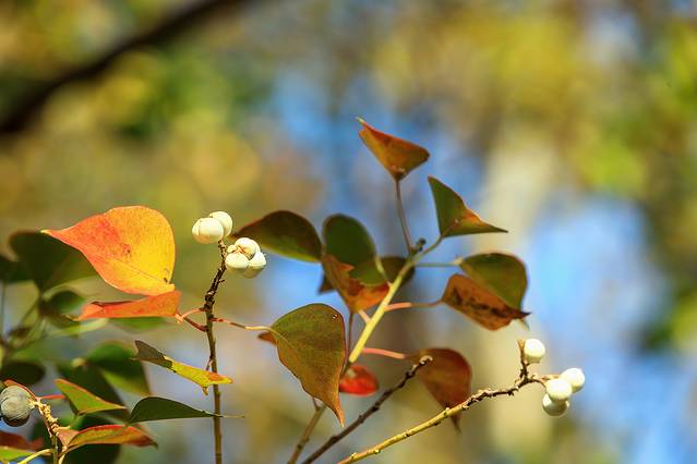 而入冬的乌桕更具禅意,白色的籽挂满枝头,恰如缩小版的梅花朵朵,更是被清代文学大家和美食家袁枚收录在《随园诗话》里,“余冬月山行,见桕子离离,误认梅蕊。”
