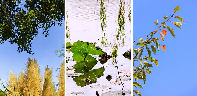 而此番游览虎丘湿地公园,看遍布湖岸的木芙蓉,在晴空蓝天映衬之下,颇有一番临水照花的虚静。