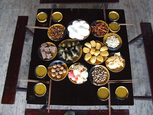 仡佬盛宴“三幺台”由三道程序组成。不论是取食顺序,还是菜品数量,都颇有讲究。