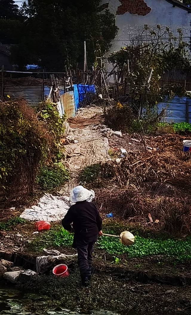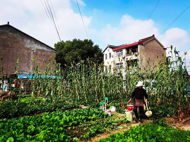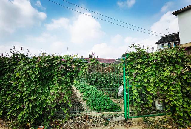 大妈很健谈,很爽朗,也很懂,问我们是不是来拍DY的,让我们在菜田里自由活动,哈哈!其实我们是来瞎逛的。大妈告诉我们,村里人大多搬走了,没搬走的都是钉子户,把老房子借给了外地人,大妈就在村头旁边的新苗路上买了商品房,每天打打麻将,再种种菜,看着大妈洋溢着满足的笑容,感染到了这种发自内心的幸福!这幸福的生活太滋润了。