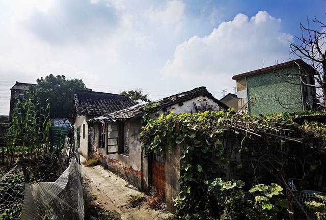 走进村里,一股桂花的馨香,扑鼻而来,村里有很多桂花树,整个村里散发着浓浓的香味,村中心的一棵大樟树很是显眼,远远的就能看到这棵树的高大树冠。村里都是些老房子,很明显,这里是拆迁的老村落,平房和楼房都刻着那个时代的烙印,村里还有人住着,村里的近况问了几个人,都说不知道,一听口音是来自外乡的,在一个菜地里我们遇到了一个当地大妈。
