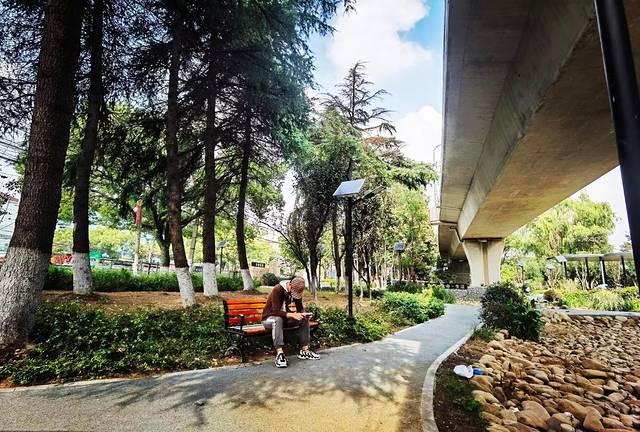 坐在北桥花园的座椅上,看着曾是秦皇驰道的马车路线,已成了行驰轻轨的空中高架,不由得感叹时光如水,世事变迁,北桥的过往今生,就像花开花落一般,繁华沦落成沧桑,绚烂往事化云烟。