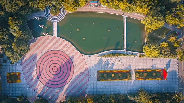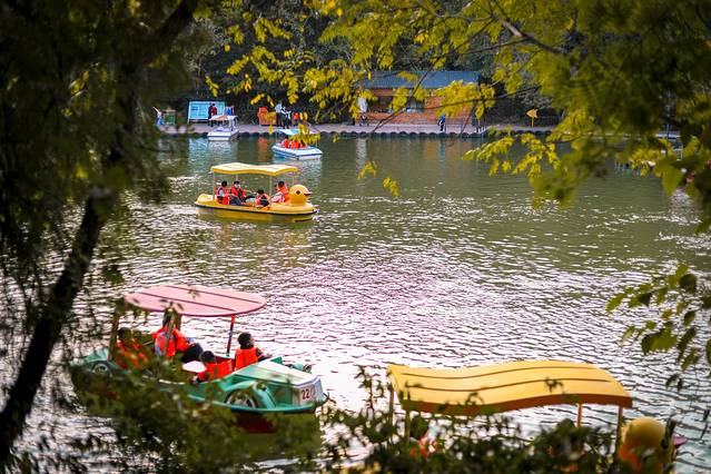 坐落在公园的中部,饮马池以南、儿童乐园以北,479.4米的湖周长,与远处的青山和蓝天相呼应,周末来这里坐船、垂钓、漫步的人很多