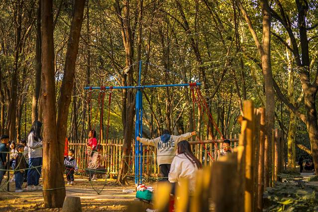 周末来相山公园,很多都是带着孩子,还有幼儿园举办的户外实践活动,在天池旁边的体能乐园里面,各种训练体力和耐力的设施,让孩子们从运动中增加体能,运动中收获快乐。