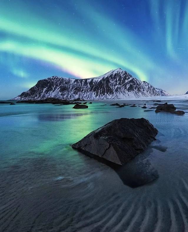 "极光掠夺天边,北风掠过想你的容颜。"清澈的天空一尘不染,耳机里播放着熟悉的曲调,而如今变幻莫测的极光就在眼前。人们总说艺术来源于生活,直到亲眼目睹传说中的“欧若拉女神”,才发觉现实中的美景比艺术作品中极尽赞美之情的辞藻更胜一筹。