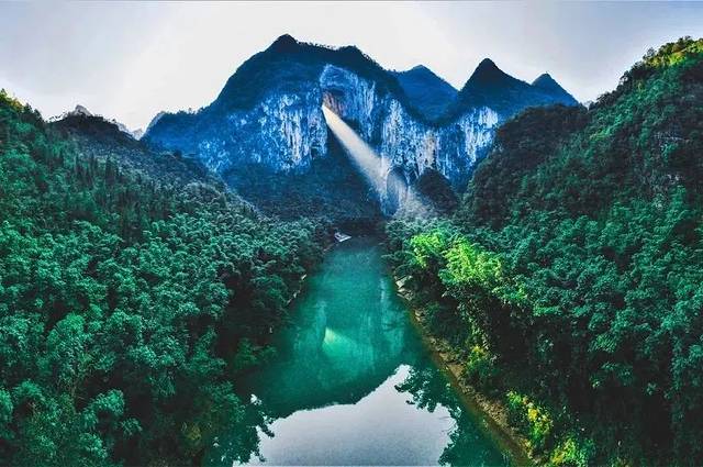 紫云格凸河景区集岩溶、山、水、洞、石、林组合之精髓,融天生门厅、洞穴人家、洞葬习俗、攀岩探险为一体,构成一幅完美的风景图画,是稀世之珍的喀斯特自然公园。