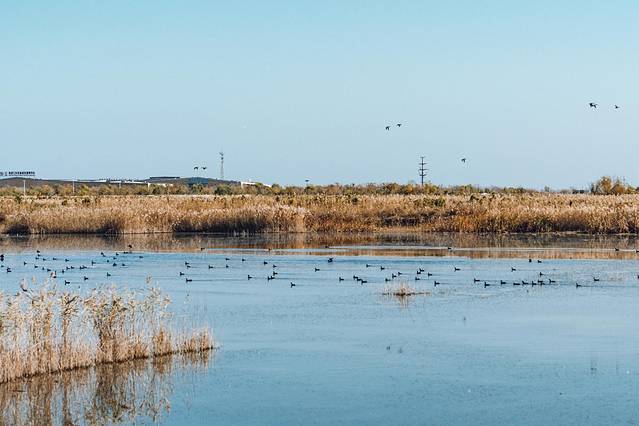 这里栖息着被誉为“鸟中国宝”的东方白鹳,绿头鸭、赤膀鸭、天鹅、卷羽鹈鹕还有略过天空的猛禽,而天然柽柳林和万亩人工刺槐林、芦苇荡的隐秘深处,是它们最安宁的家。