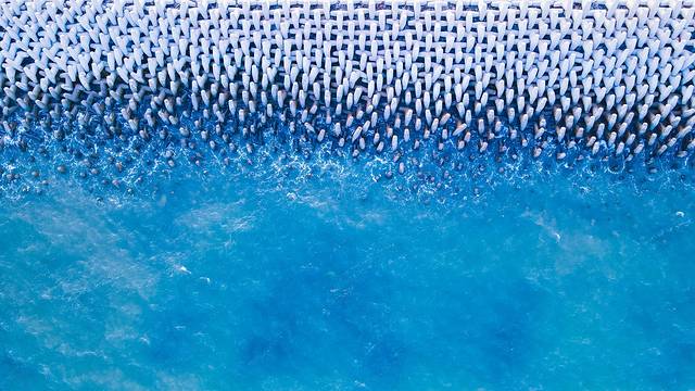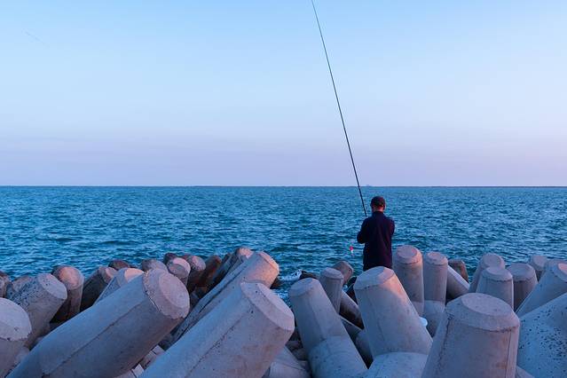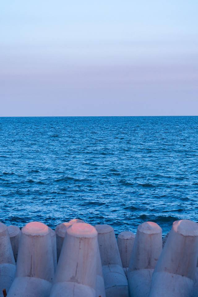 你很难想象多年前这里还是一片浅浅的海漫滩,涨潮时的汪洋,退潮后的泥滩,而如今一座座建造的防浪石坚定的守卫海堤,它们守卫胜利油田和东营。