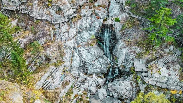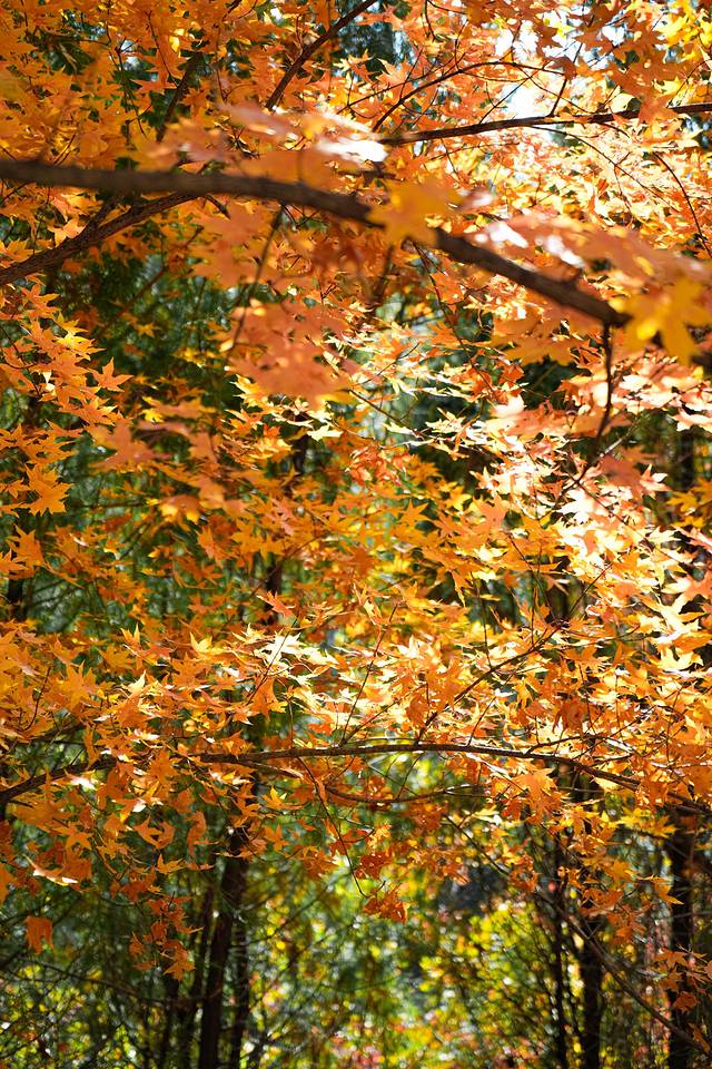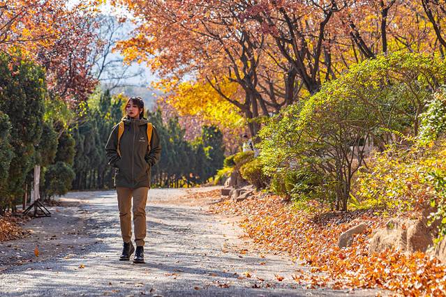 沿着九如山湖边的十公里木栈道赏秋,拧筋槭、假色槭、复叶槭夹杂在其间,为九如山的秋增添了一抹灵动俏皮。