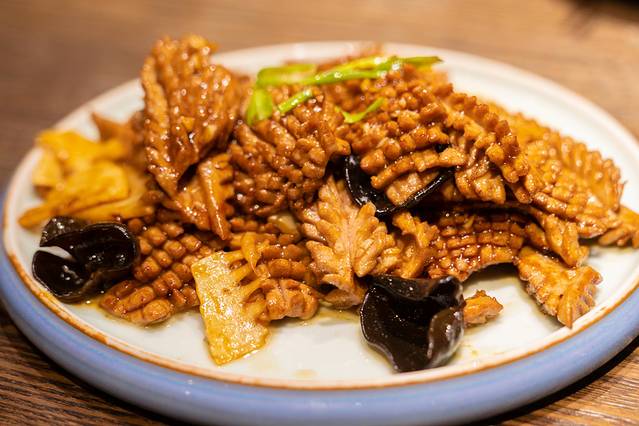 招牌菜糖醋大鲤鱼绝对是宴会上的佳肴,雨身花刀和造型,一眼便感慨非遗的深厚功底。爆炒腰花对火候要求极高,鲜嫩醇香的滋味回味无穷。