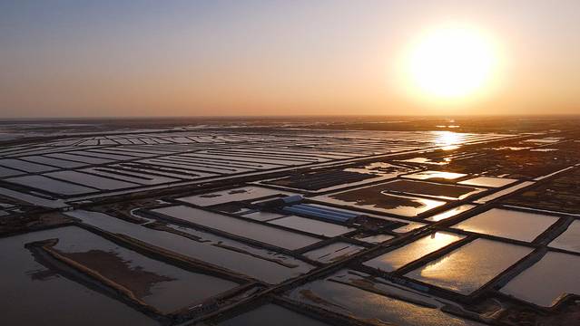 从黄河口生态旅游区到孤东海堤直线14km,我们开了170km,刚好赶上孤东海堤的日落,视线远处就是海上“流动的国土”。