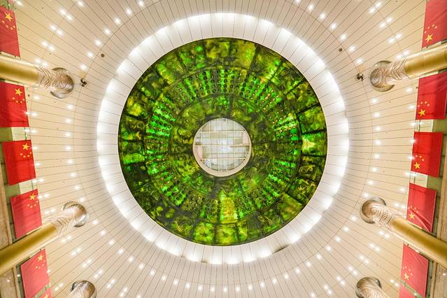 碧绿色的大厅穹顶的造型来源于镇馆之宝,鲁国大玉璧。二十多个展厅从史前、夏商周、秦汉明清...